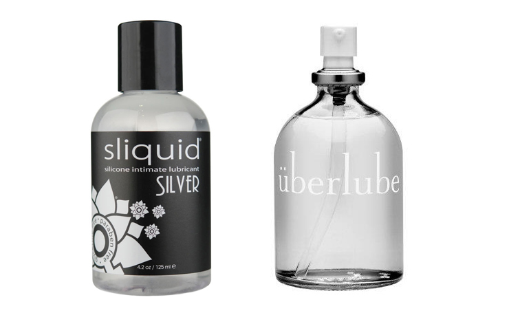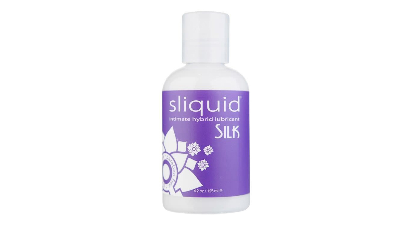 Hybrid lubes are made with a mixture of water and silicone. Our favorite hybrid lube is Sliquid Silk. It’s vegan, does not contain glycerin or parabens, and it has a nice creamy texture and appearance. Many people use hybrid lubes successfully with silicone toys, but always perform a test first.
